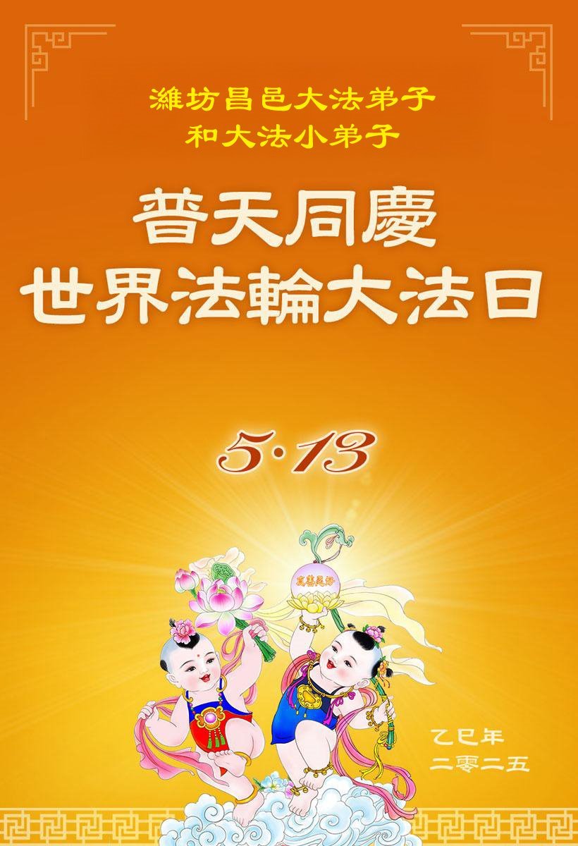山东省潍坊昌邑大法弟子和大法小弟子恭祝师父生日快乐!普天同庆世界法轮大法日!
