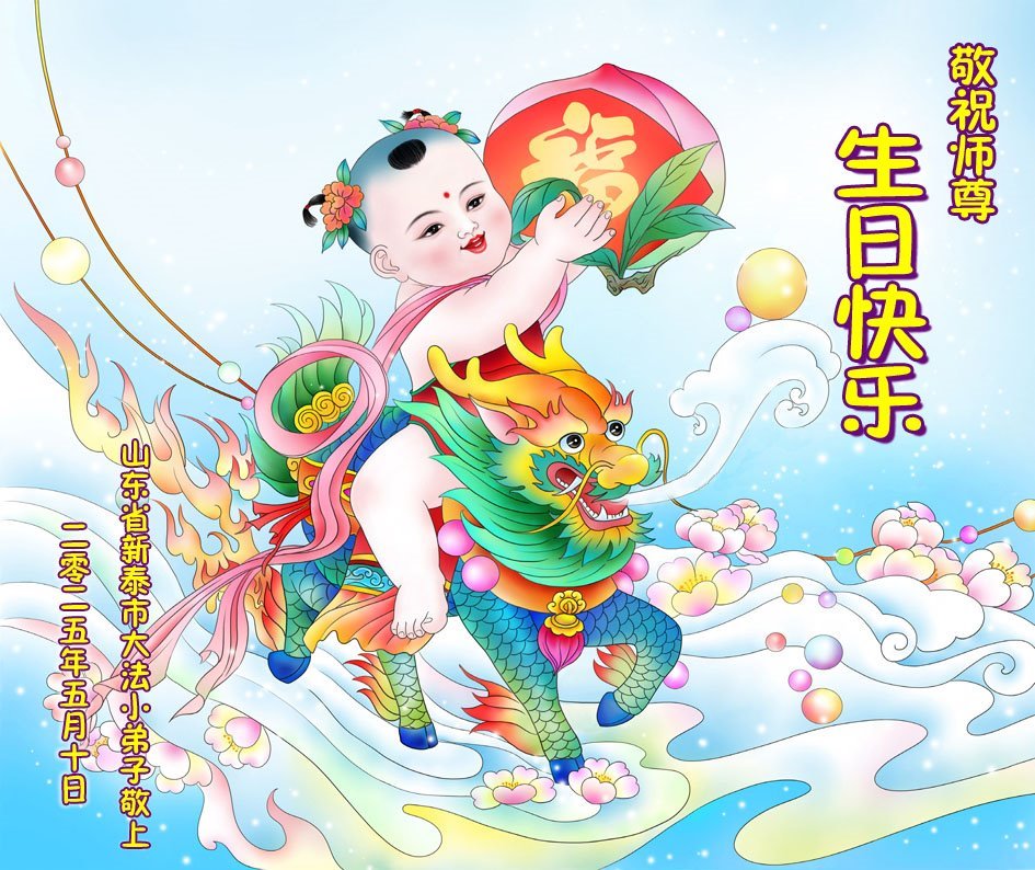 山东省泰安新泰市大法小弟子恭祝师尊生日快乐!