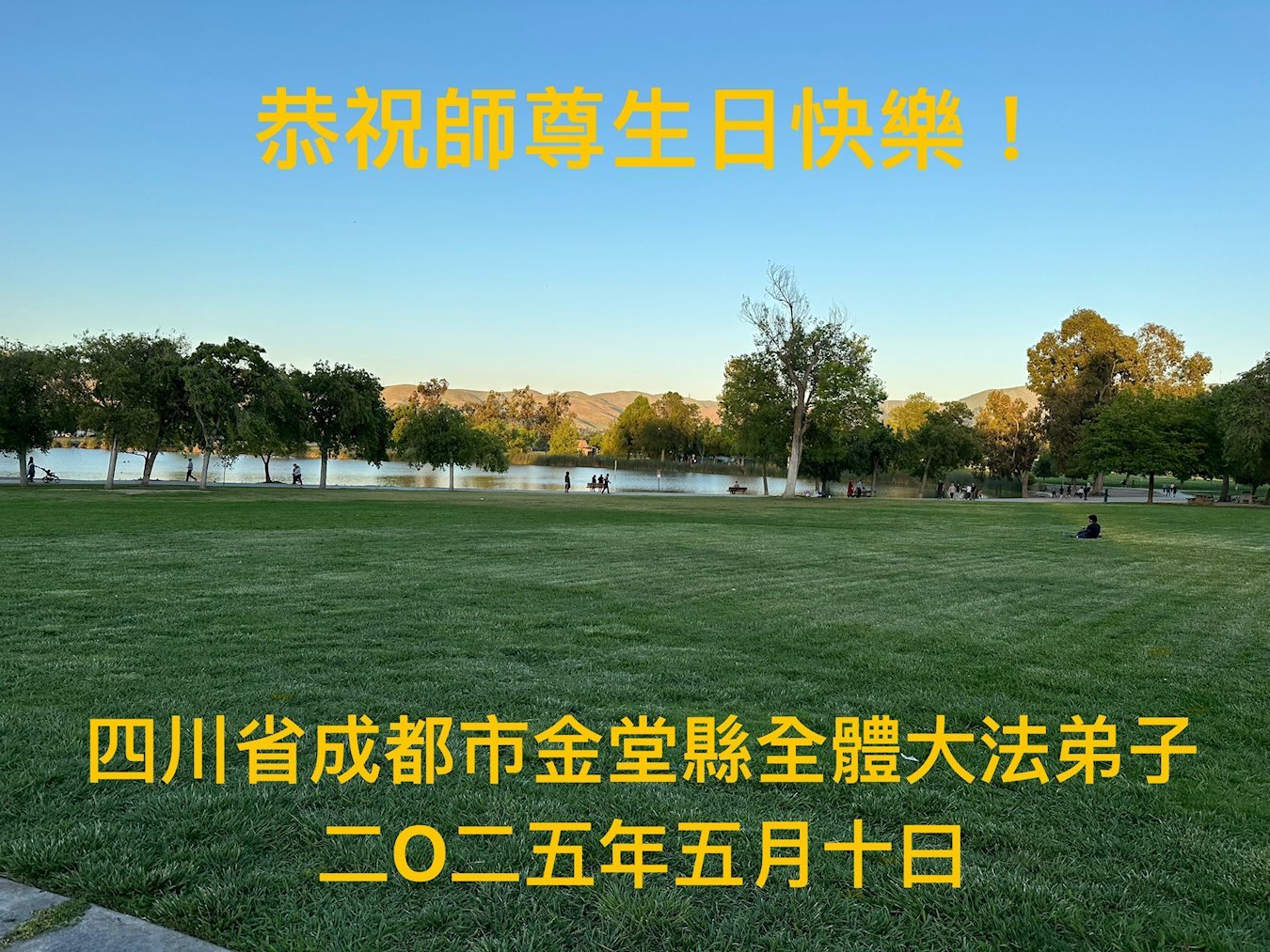 【明慧网二零二五年五月十四日】 四川省成都市金堂县大法弟子恭祝师尊生日快乐!