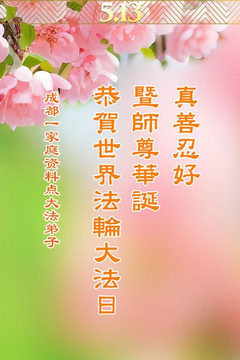 普天同庆5·13世界法轮大法日! 四州成都青羊区大法弟子敬上 四川成都大法弟子恭祝师尊生日快乐!
