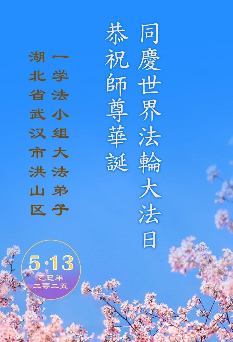 【明慧网二零二五年五月十四日】 湖北武汉一学法小组大法弟子恭祝师尊生日快乐!