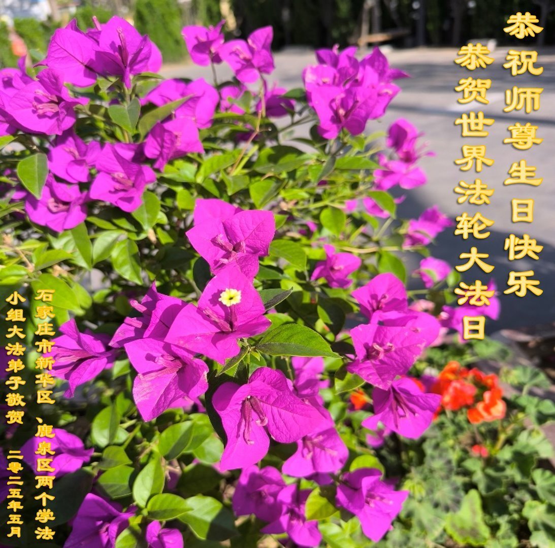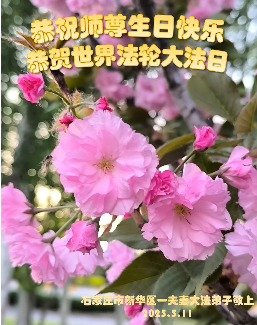 恭贺世界法轮大法日! 石家庄市新华区一对夫妻大法弟子敬上 二零二五年五月十一日 河北省石家庄市一家大法弟子恭祝师尊生日快乐!