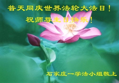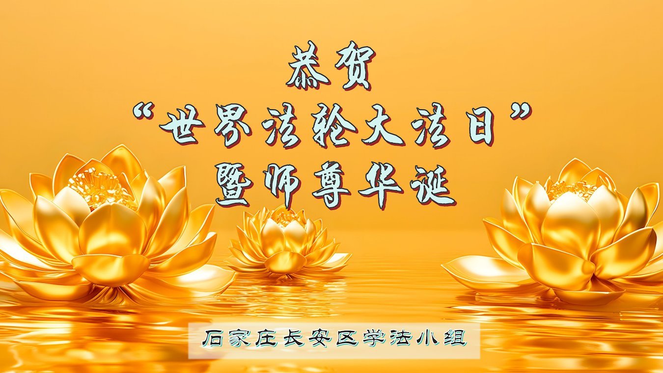 恭贺世界法轮大法日! 河北省石家庄市新华区一学法小组大法弟子恭祝师尊生日快乐!