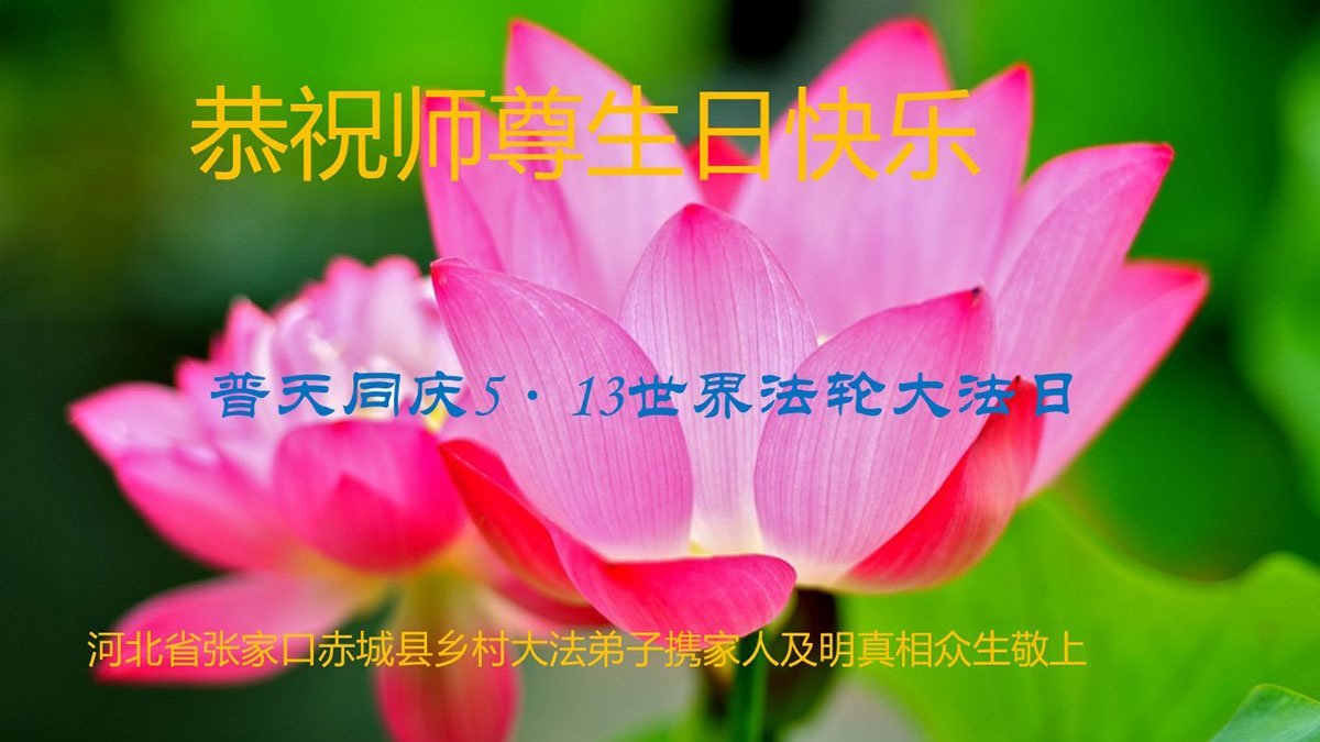 师父您辛苦了,弟子们感恩师尊的慈悲救度!谢谢您的慈悲保护! 河北省张家口赤城县乡村大法弟子携家人及明真相众生敬贺法轮大法日!
