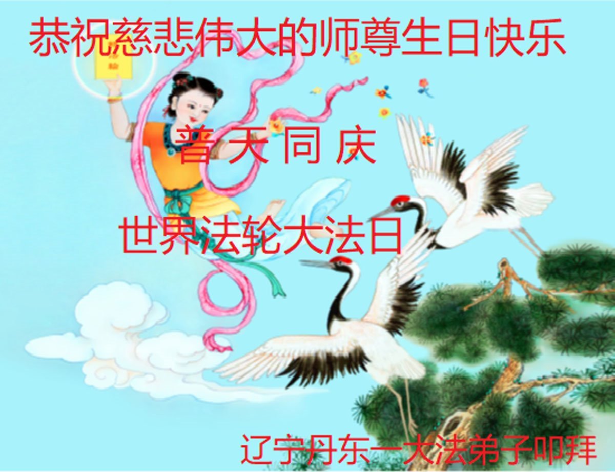 尊敬的师父好! 在法轮大法日到来之际,感恩师父让我喜得大法,令我身心受益,家庭和睦。我是农村妇女,母亲、姐姐们得法修炼二十八载,我一直是处于下士。但是在这二十八年中,我经历了多次劫难,在师父的保护下,平安渡劫。我知道师父就在我身边,有放不下的执著时,师父就点化我,我就会按照师父的法对照自己,放下各种人心和欲望。我从内心深深的感谢师父!今后我一定要抓紧时间多学法领悟法理,勇猛精進,坚定的真修实修大法,做一名上士。祝师父生日快乐! 黑龙江省抚远市一乡村大法弟子恭祝世界法轮大法日!恭祝慈悲伟大的师尊生日快乐!