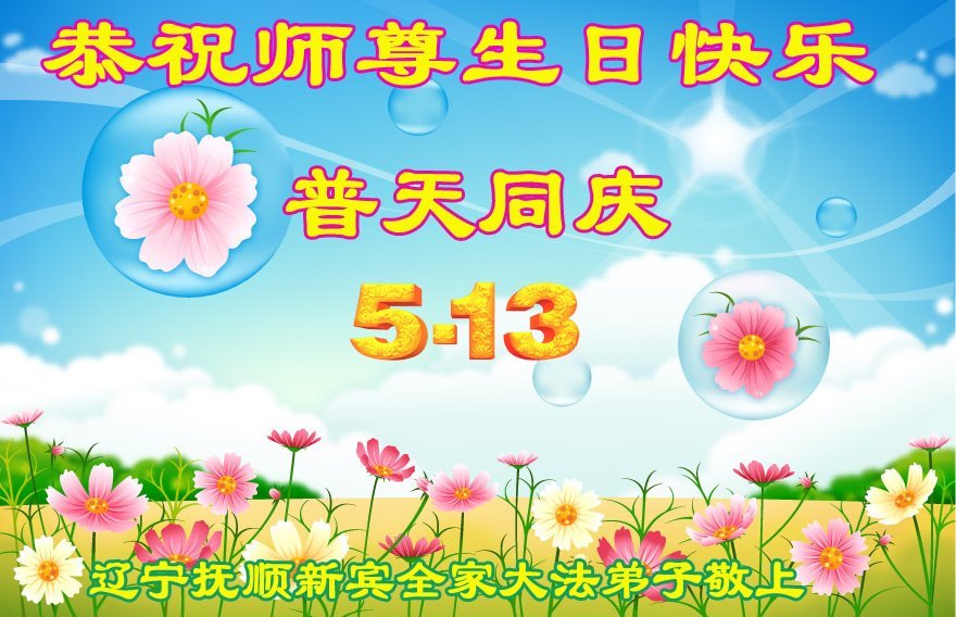 辽宁省抚顺新宾全家大法弟子恭贺世界法轮大法日暨敬祝师尊华诞!