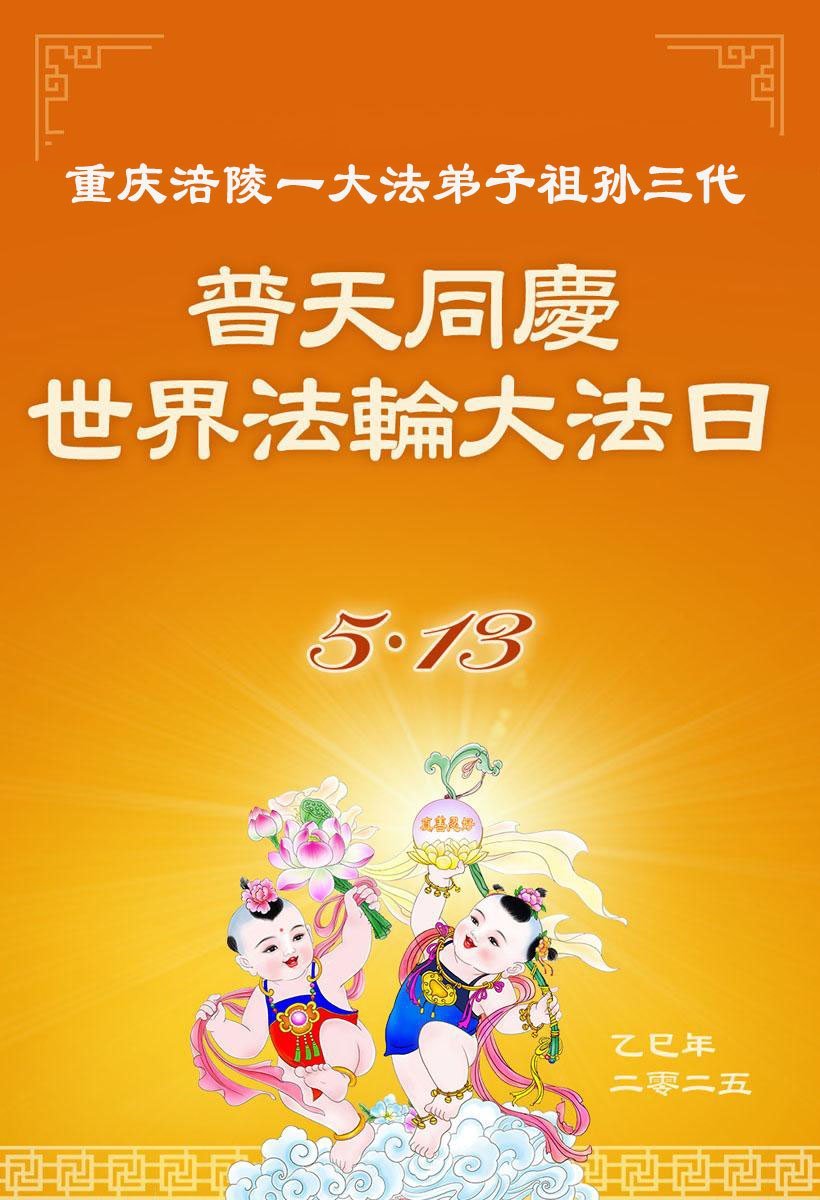 【明慧网二零二五年五月十四日】 重庆市巴南区大法弟子携家人恭祝师父生日快乐暨世界大法日!