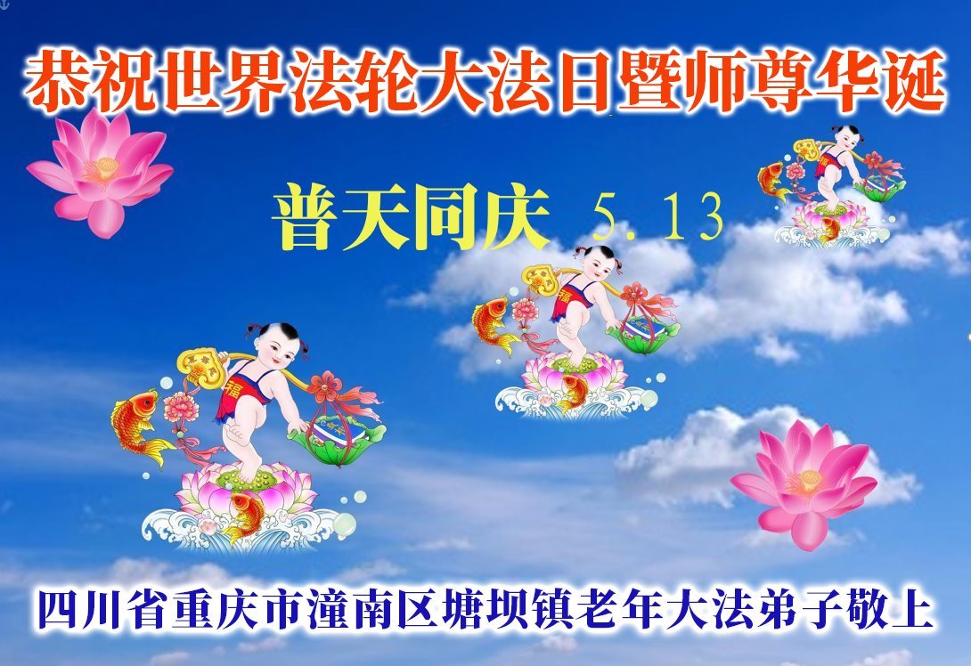 重庆市潼南区塘坝镇老年大法弟子恭贺世界法轮大法日暨敬祝师尊华诞!
