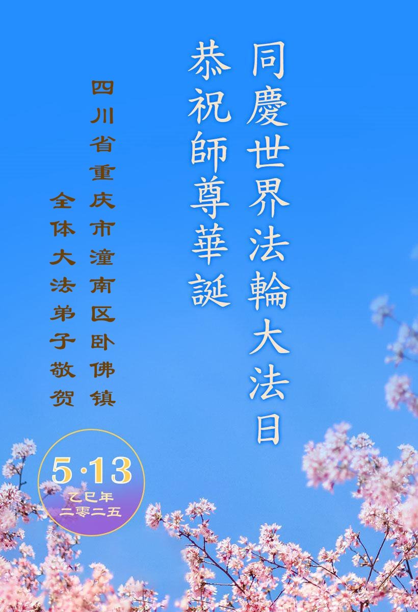 重庆市潼南区卧佛镇大法弟子恭贺世界法轮大法日暨敬祝师尊华诞!