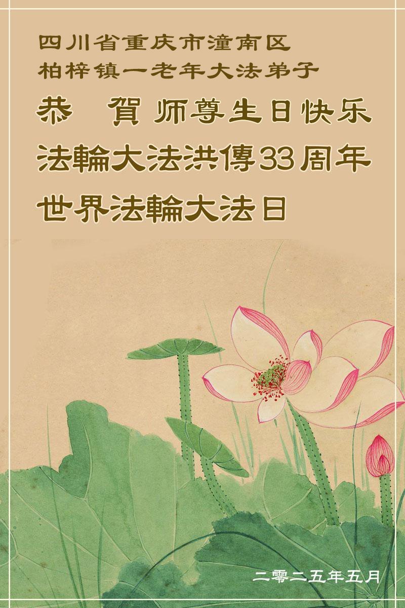 重庆市潼南区柏梓镇一老年大法弟子恭贺世界法轮大法日暨敬祝师尊华诞!