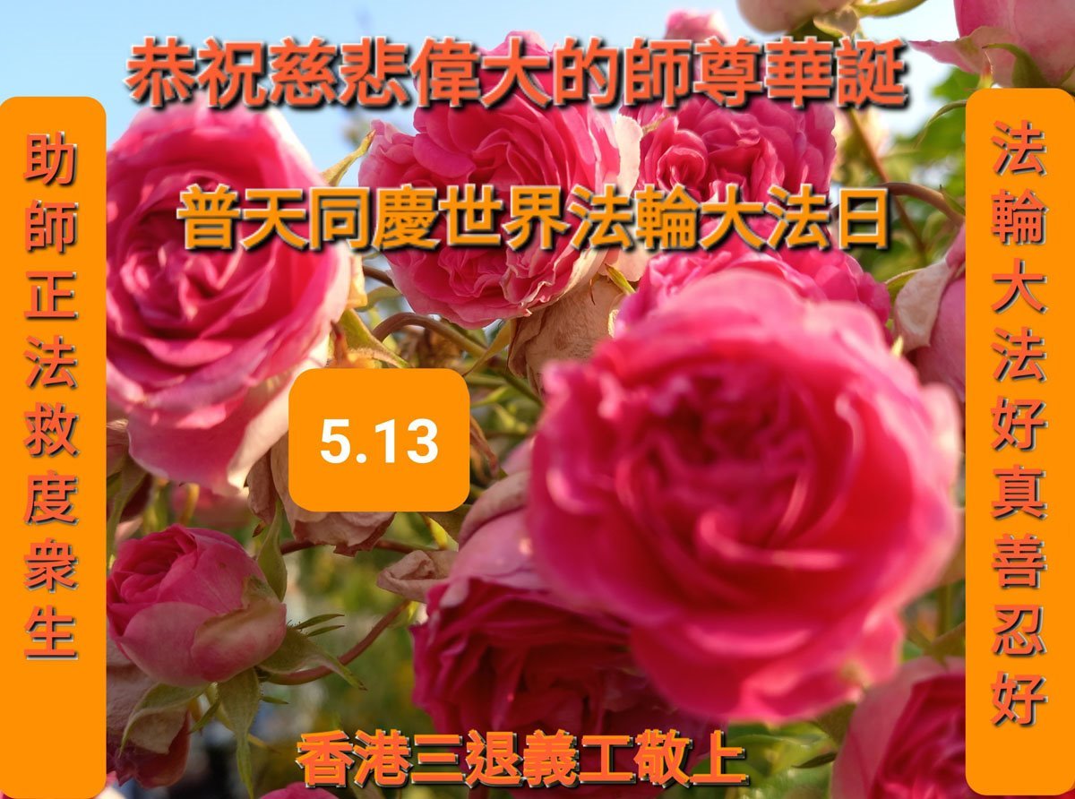 香港三:退.义工恭祝慈悲伟大的师尊华诞!普天同庆世界法轮大法日!