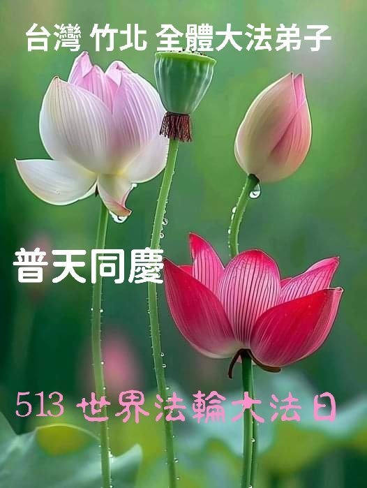 敬贺513世界法轮大法日! 台湾竹北全体大法弟子敬上 台湾一大法弟子恭祝慈悲伟大的师尊华诞!