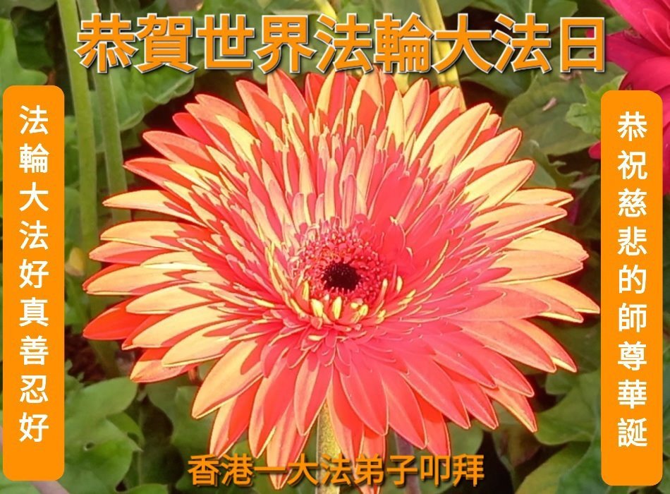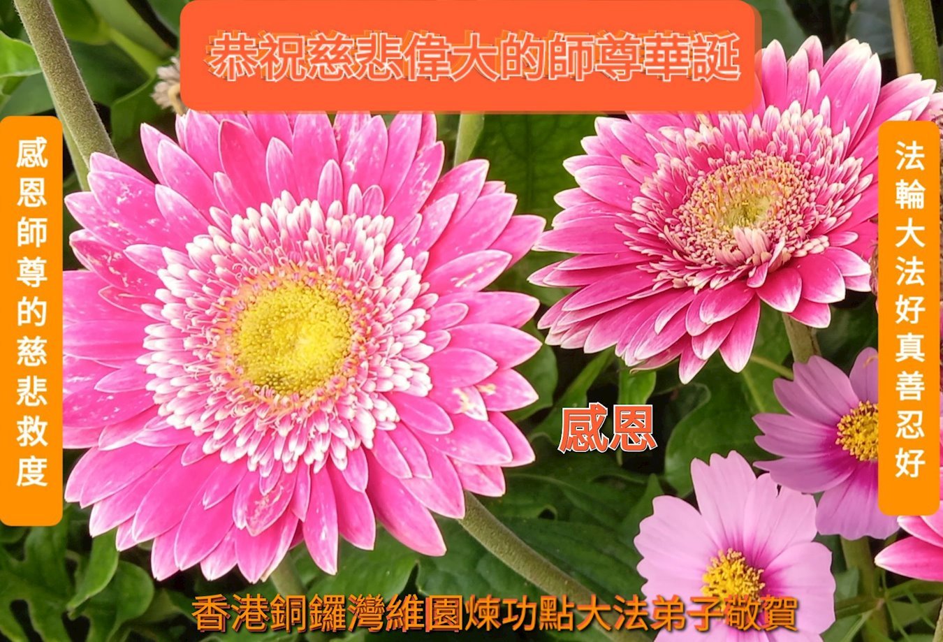 恭祝师父生日快乐!弟子会记得多学法、听法,把三件事情做好! 会提醒自己,时时刻刻用真、善、忍的标准要求把事情做好! 感谢师尊的慈悲苦度! 香港全体大法弟子恭祝世界法轮大法日暨师尊华诞!