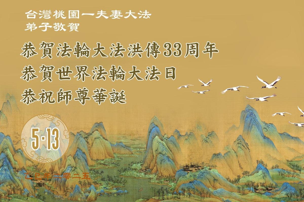 恭贺世界法轮大法日! 台湾桃园一夫妻大法弟子祝贺师尊华诞!