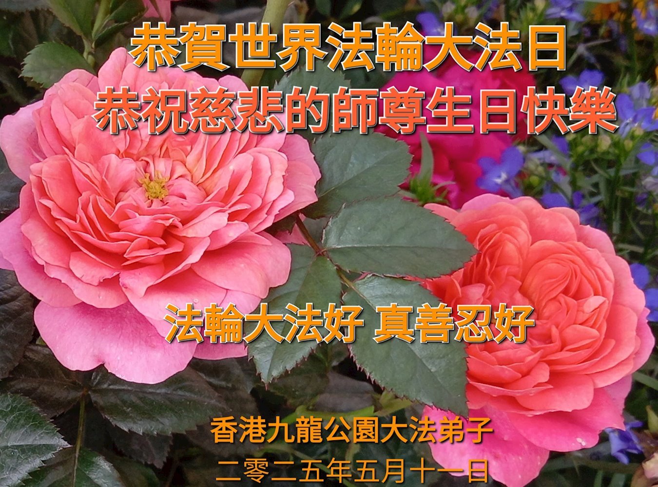 普天同庆同贺世界法轮大法日! 恭祝慈悲伟大的师尊生日快乐! 法轮大法好,真善忍好。 香港九龙公园大法弟子合十 台湾云林一大法弟子敬祝师尊生日快乐!