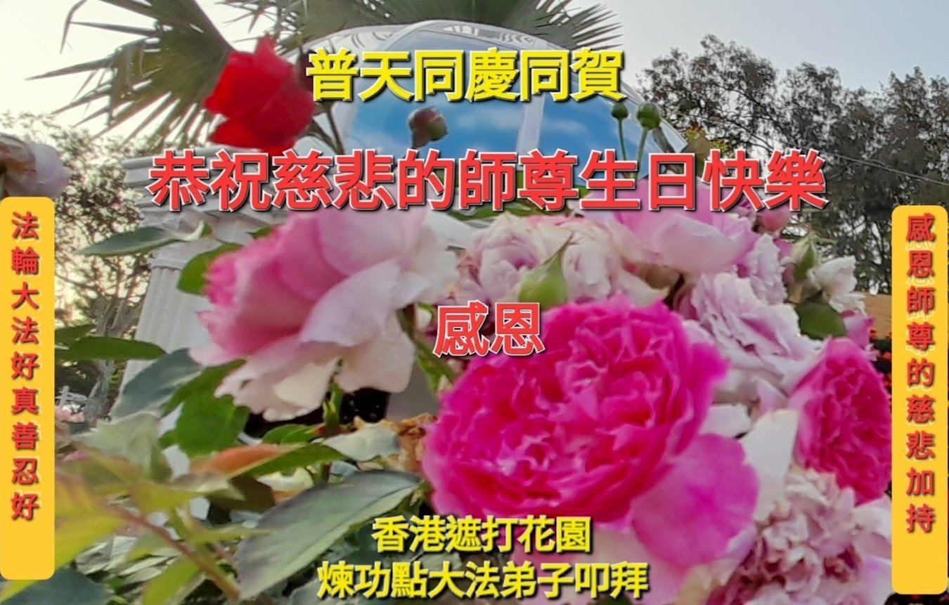 感恩师尊慈悲救度,弟子一定做好三件事,叩谢师恩。 台湾云林一大法弟子 香港遮打花园炼功点大法弟子恭祝慈悲伟大的师尊生日快乐!