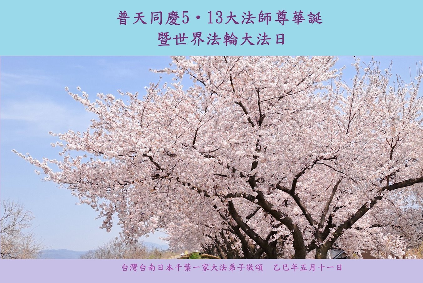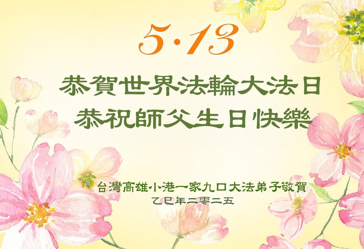 普天同庆5‧13世界法轮大法日暨师尊华诞! 台湾台南日本千叶一家大法弟子敬上 台湾高雄小港一全家大法弟子恭贺世界法轮大法日暨师父华诞!