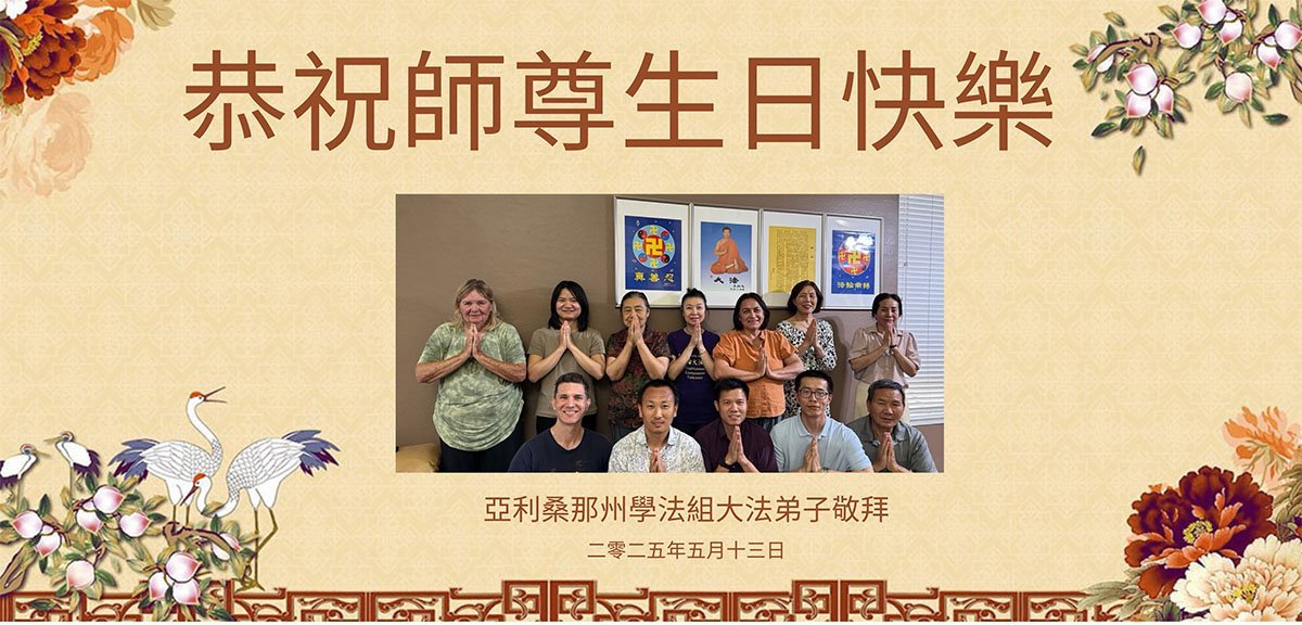 美国亚利桑那州一学法组大法弟子恭祝师尊生日快乐!同庆世界法轮大法日!