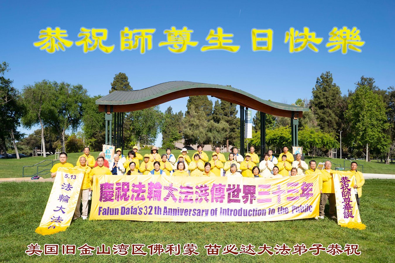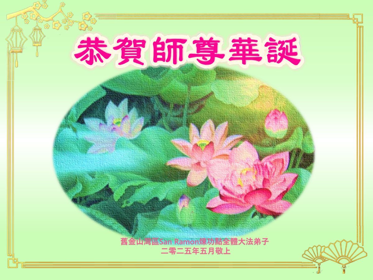 【明慧网二零二五年五月十四日】 美国旧金山湾区佛利蒙、苗必达大法弟子恭祝师尊生日快乐!恭贺世界法轮大法日!