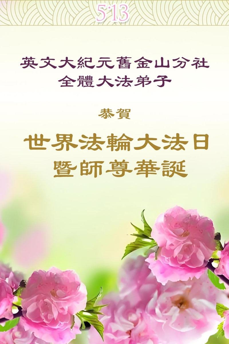 普天同庆:5.13世界法轮大法日!暨慈悲伟大的师尊华诞! 英文大.纪.元;美国旧金山分社全体大法弟子恭贺法轮大法日!