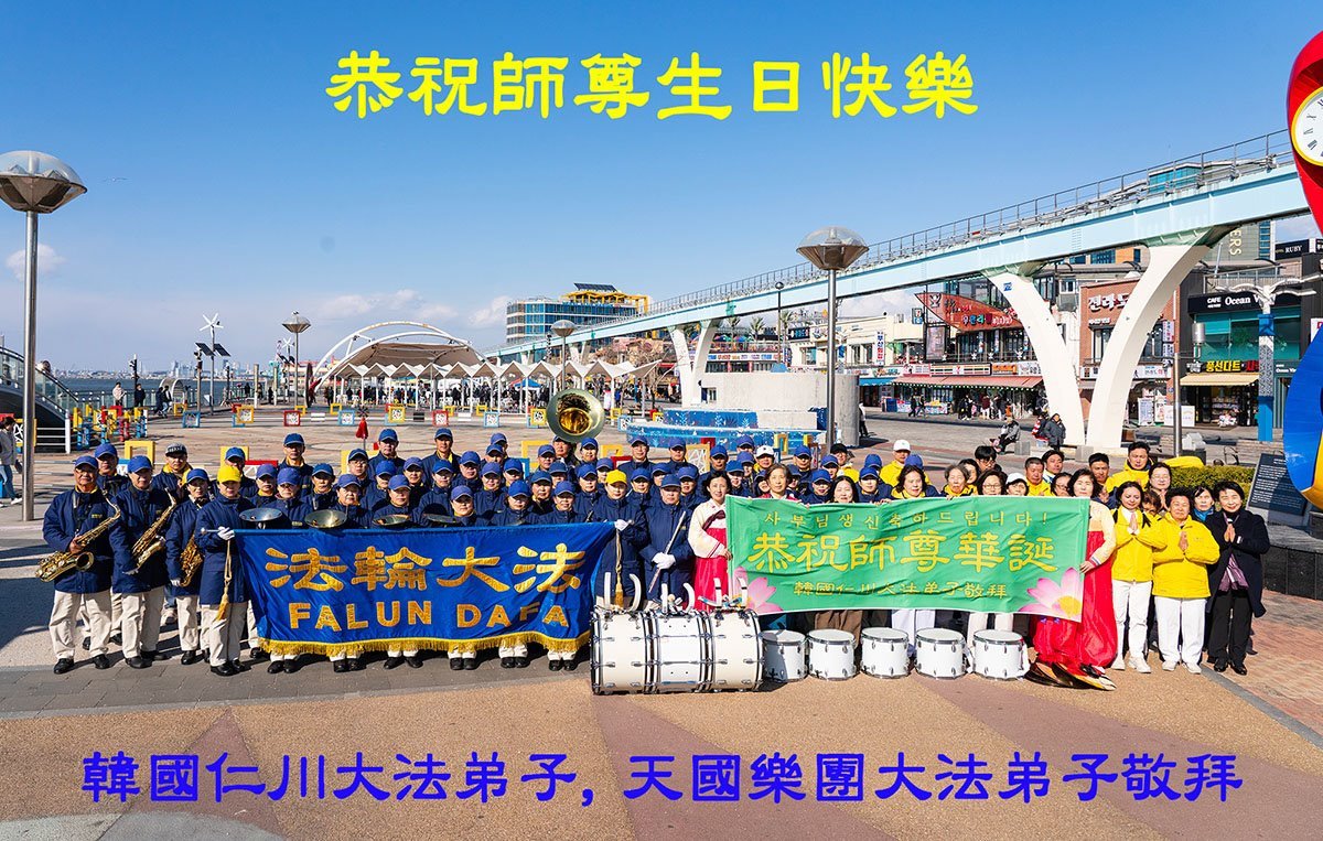 韩国仁川大法弟子、天国乐团大法弟子恭祝师尊生日快乐!