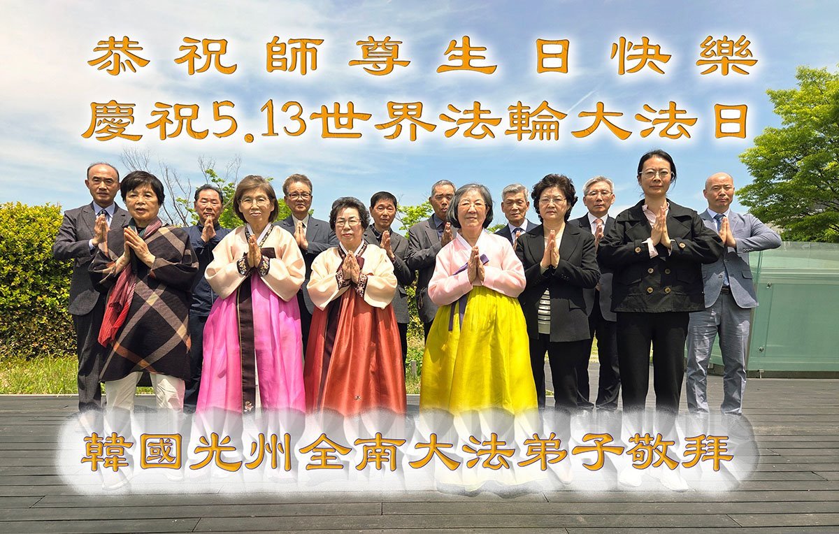 韩国光州全罗南道大法弟子恭祝师尊生日快乐!