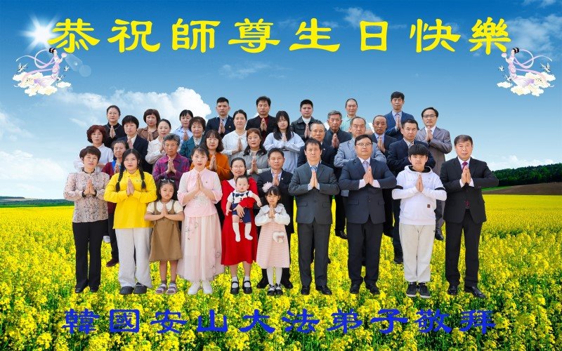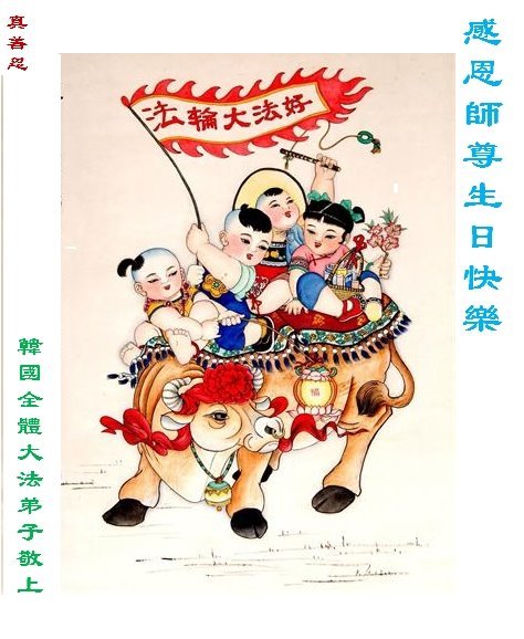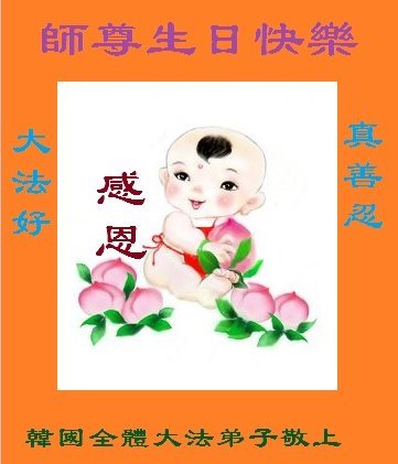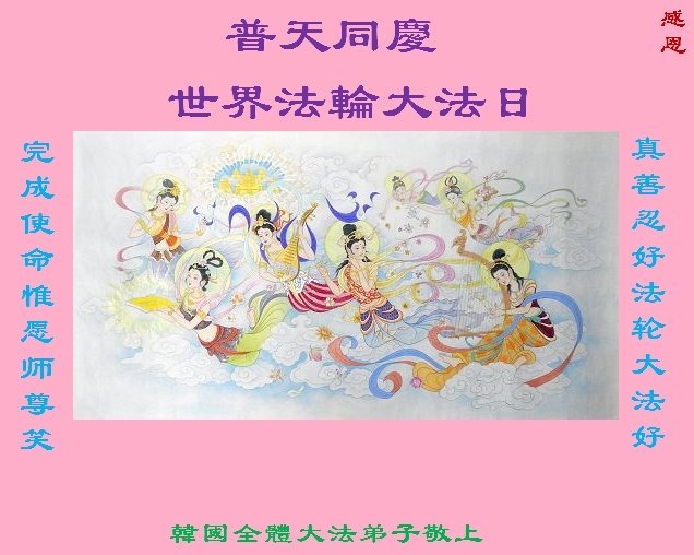 恭贺世界法轮大法日!恭祝师尊生日快乐!法轮大法好!真善忍好!感恩师尊! 韩国全体大法弟子敬上 韩国大法弟子敬贺世界法轮大法日暨师尊华诞!