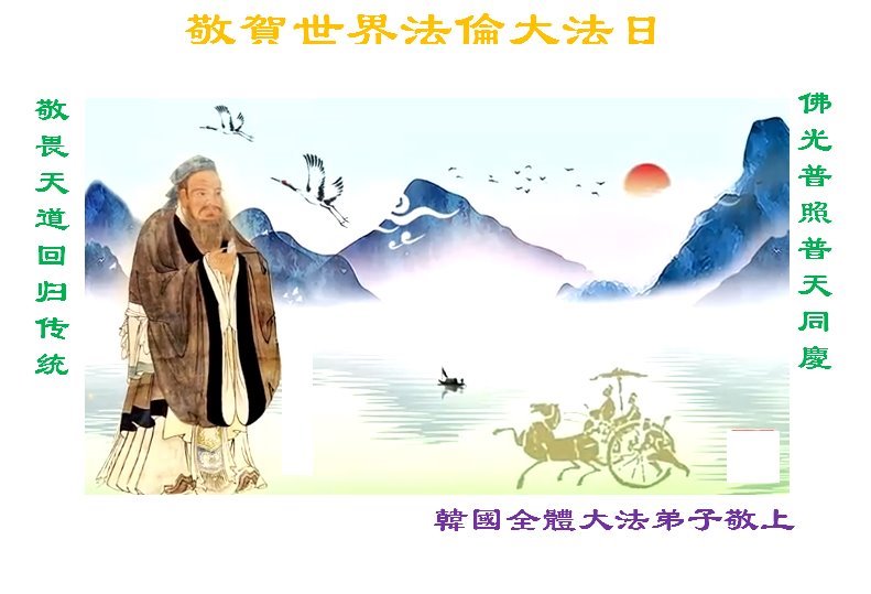 敬贺世界法轮大法日!佛光普照普天同庆!敬畏天道回归传统! 韩国大法弟子敬上