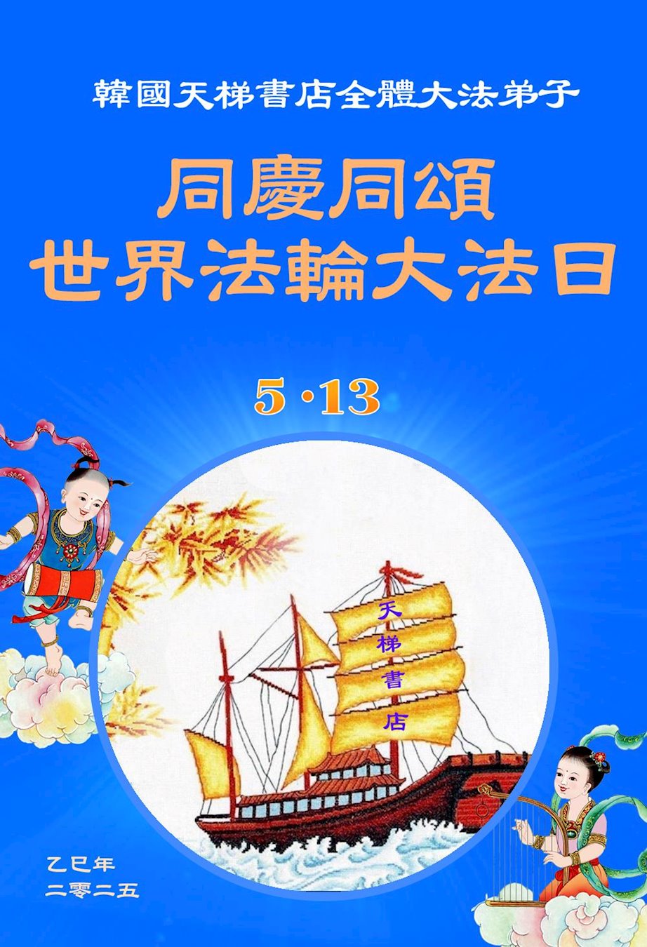 韩国天梯书店全体大法弟子同庆同颂世界法轮大法日! 韩国全体大法弟子敬贺世界法轮大法日暨师尊华诞!