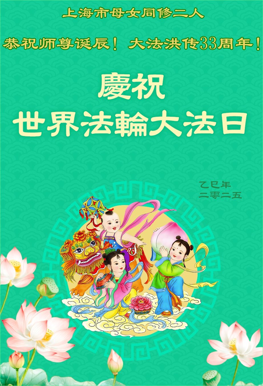【明慧网二零二五年五月十五日】 上海市母女同修二人恭祝师尊华诞!大法洪传33周年!