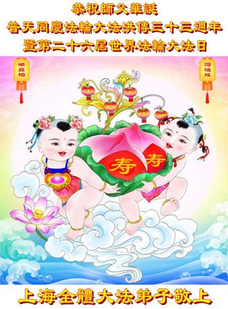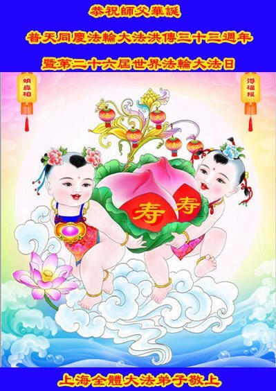 普天同庆世界法轮大法日! 上海市一大法弟子恭贺世界法轮大法日暨师尊华诞!