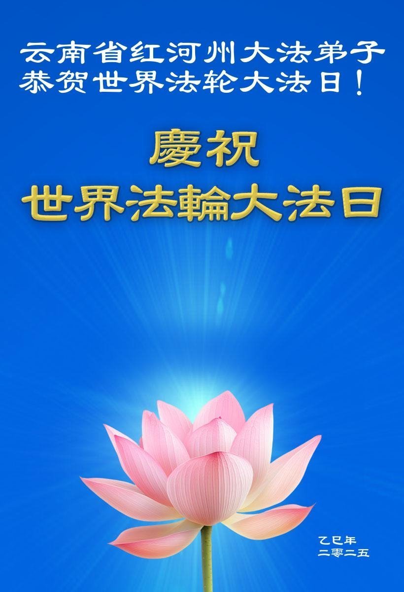 在这513神圣的节日里,感恩师尊的慈悲苦度!感恩师尊给予弟子们的一切! 师父您辛苦了!我们会在工作和生活中实修,做好三件事,跟师父回家。 云南省曲靖市宣威大法弟子敬上 二零二五年五月十日 云南省红河州个旧市大法弟子恭贺世界法轮大法日暨师尊华诞!