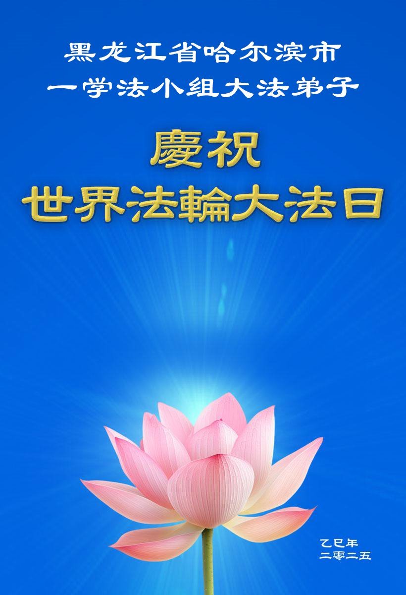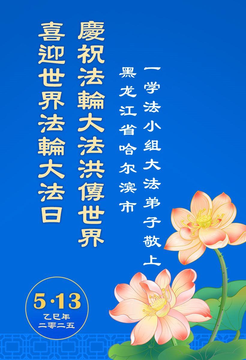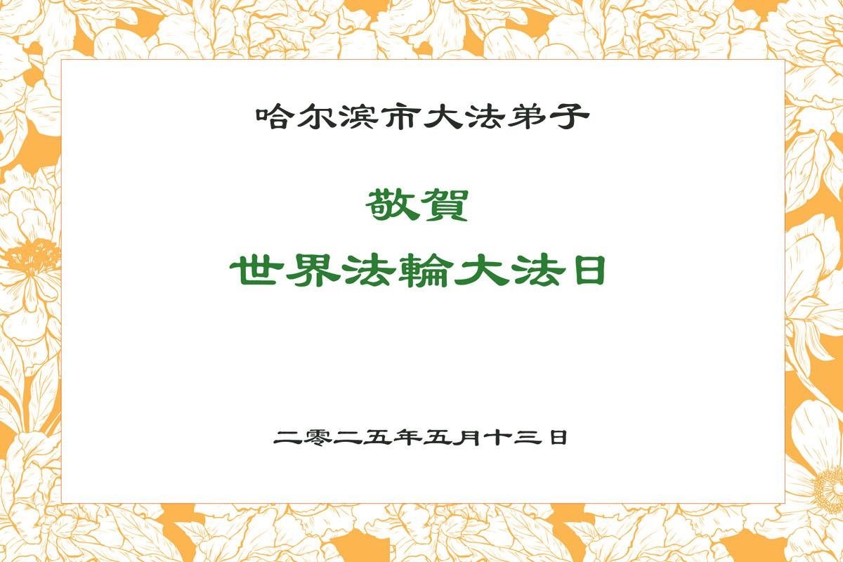 【明慧网二零二五年五月十五日】 黑龙江省哈尔滨市双城区一学法小组大法弟子恭贺世界法轮大法日!