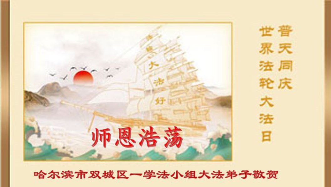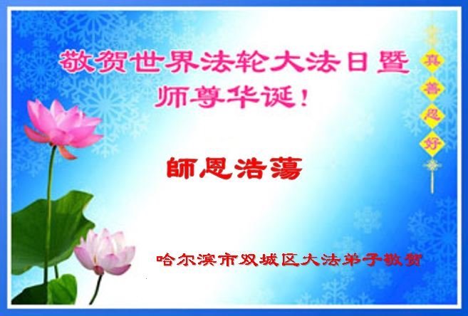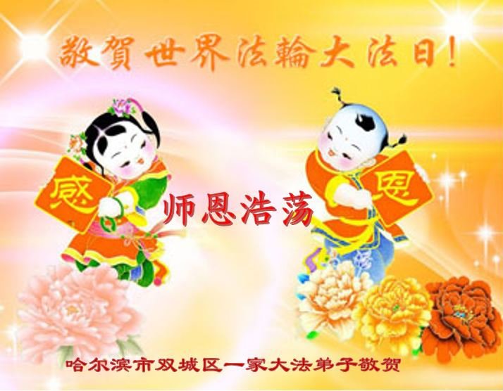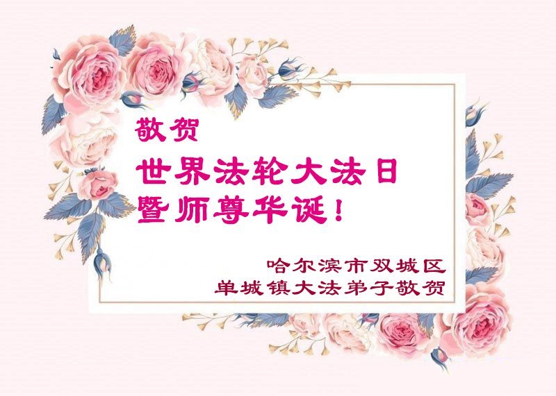 恭贺世界法轮大法日!恭贺法轮大法洪传三十三周年!恭祝慈悲伟大的师尊华诞! 黑龙江省哈尔滨市双城区一学法小组大法弟子敬上 黑龙江省五常市一大法弟子恭贺世界法轮大法日!敬祝师尊生日快乐!