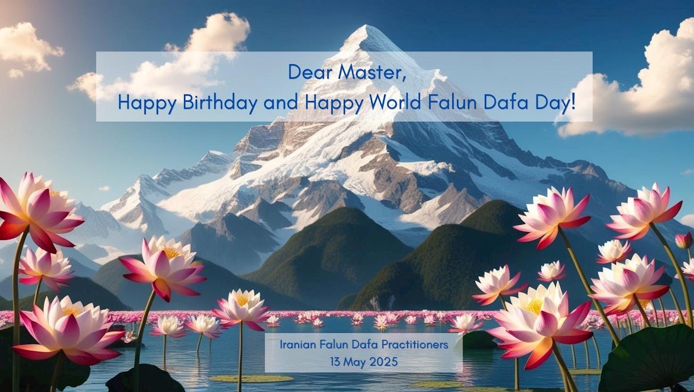 伊朗大法弟子恭祝慈悲的师尊华诞!恭贺世界法轮大法日!