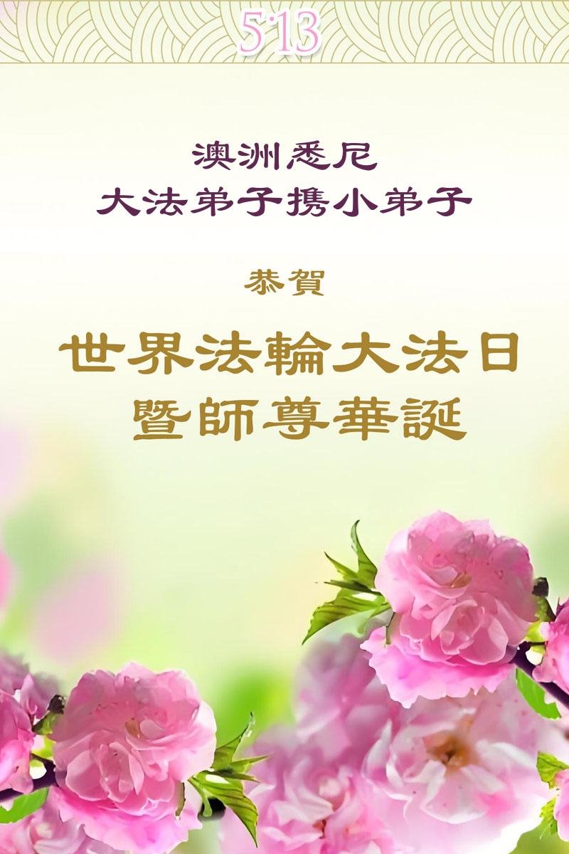 澳大利亚悉尼一大法弟子恭贺世界法轮大法日!恭祝师父生日快乐!师父您辛苦了!