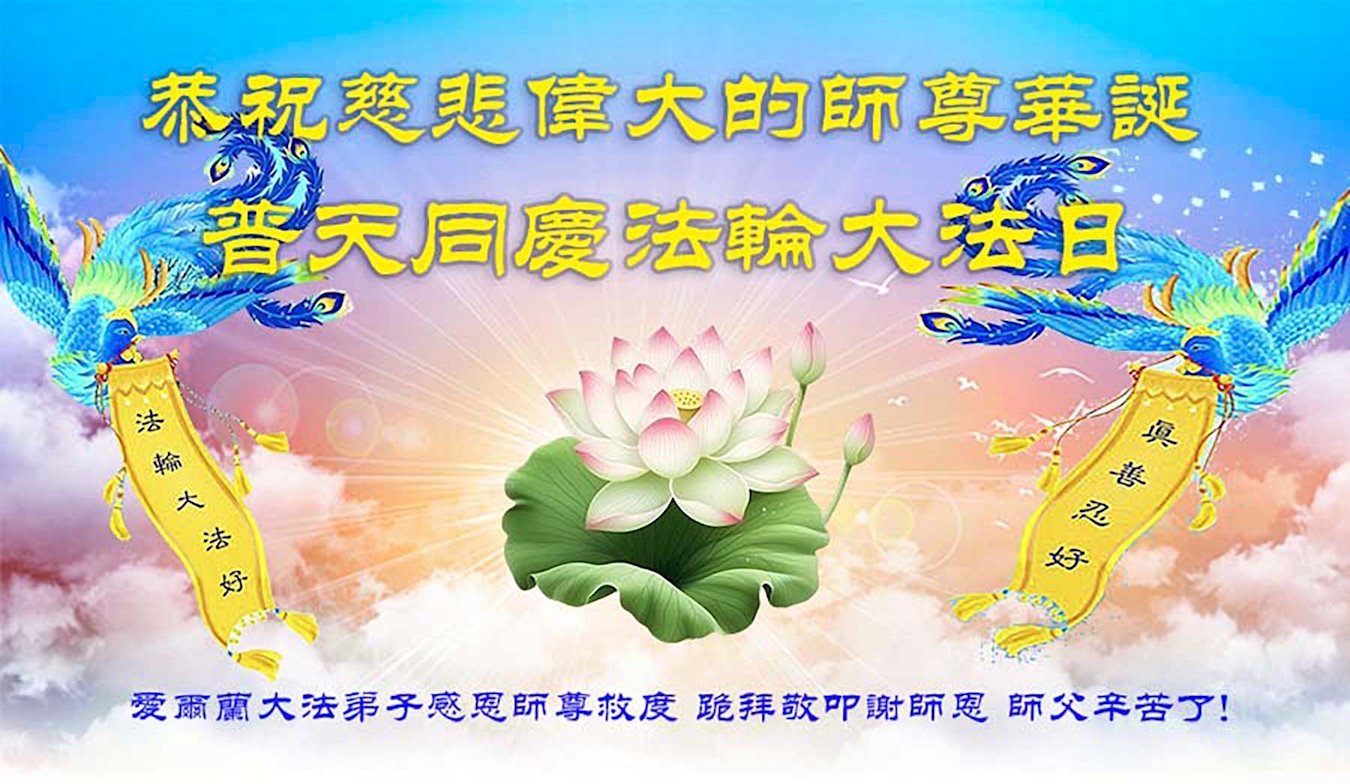 普天同庆法轮大法日! 爱尔兰大法弟子感恩敬上 爱尔兰全体大法弟子恭祝师尊生日快乐!