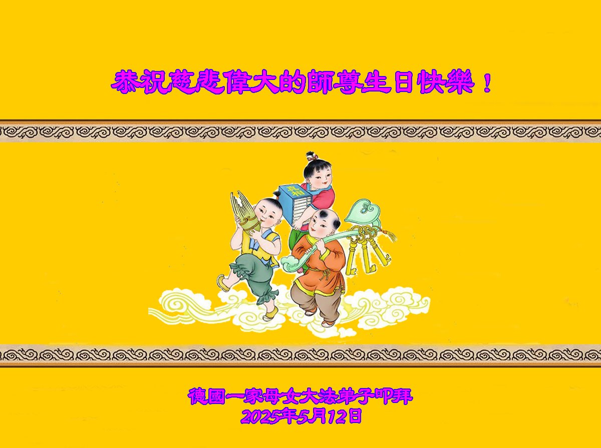德国一家母女大法弟子恭祝慈悲伟大的师尊生日快乐!