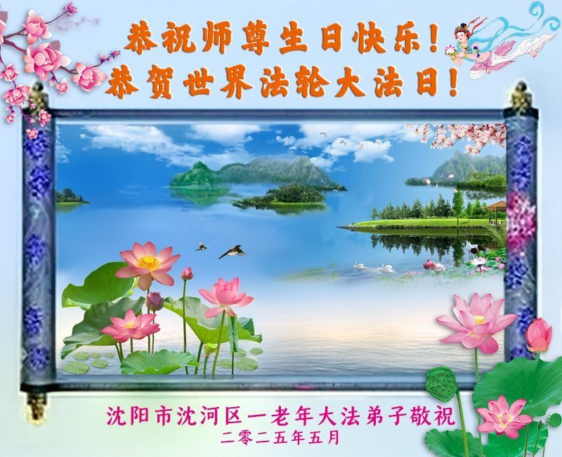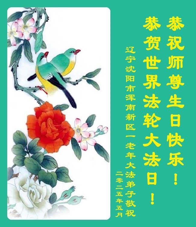 恭祝慈悲伟大的师尊生日快乐! 无论弟子身在何处,一定牢记自己使命,做好三件事,否定迫害,坚定的信师信法,紧紧抓住师父的手,跟师父回家! 辽宁省沈阳市苏家屯区母女大法弟子敬上 二零二五年五月八日 辽宁省沈阳市浑南新区一老年大法弟子恭贺世界法轮大法日!敬祝慈悲伟大的师尊生日快乐!