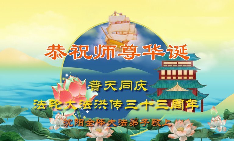 恭祝师父华诞!恭贺世界法轮大法日!师父辛苦了! 辽宁省沈阳市两名大法弟子恭祝师尊生日快乐!同祝世界法轮大法日!