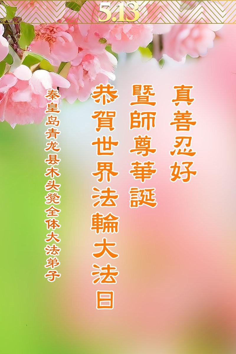 【明慧网二零二五年五月十六日】 河北省秦皇岛青龙县木头凳大法弟子恭贺世界法轮大法日!