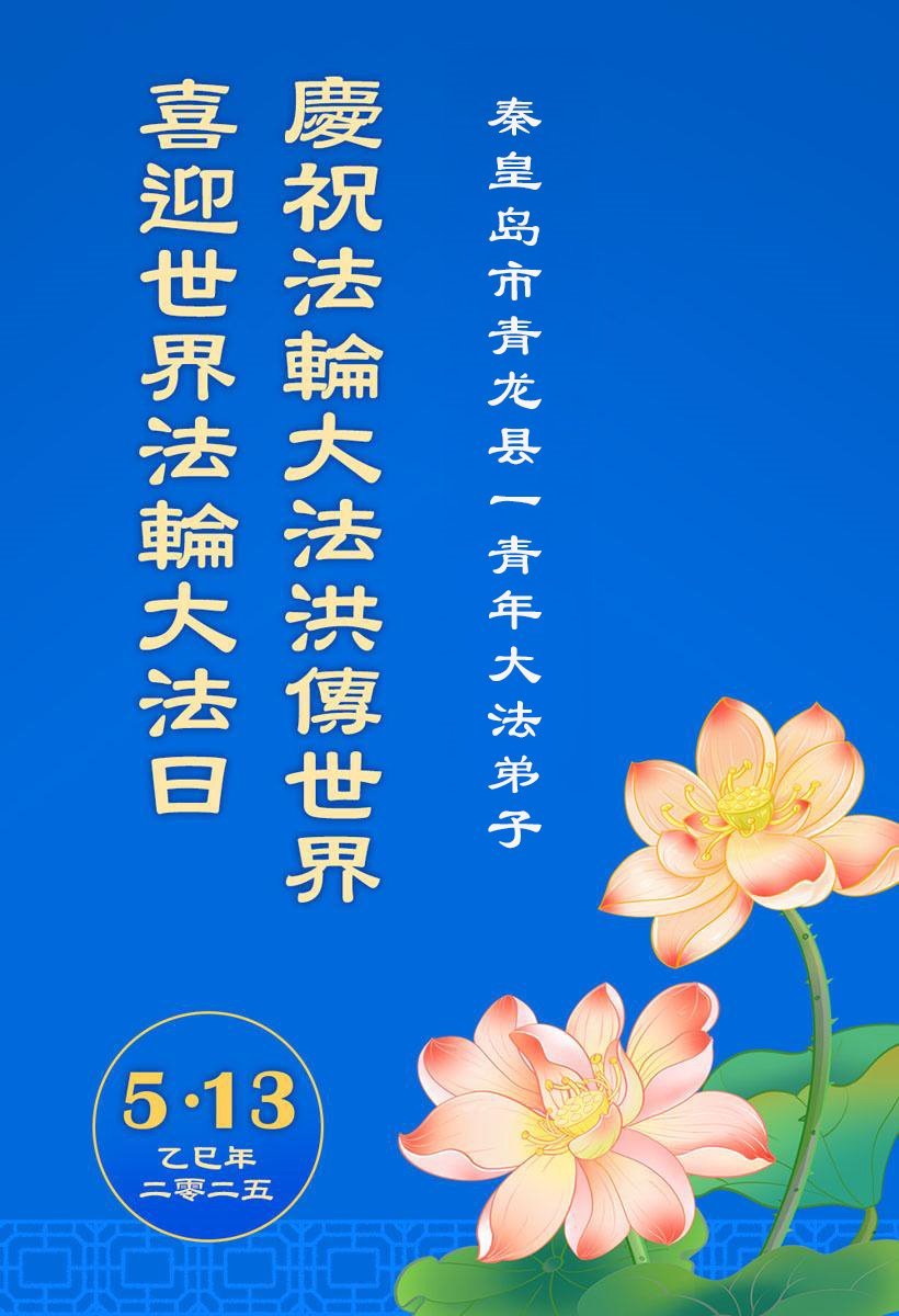 河北省秦皇岛青龙县木头凳大法弟子敬上 二零二五年五月十日 河北省秦皇岛市青龙县一青年大法弟子庆贺5.13世界法轮大法日!