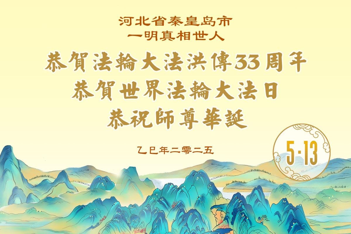 河北省秦皇岛市一明真相世人恭贺世界法轮大法日!