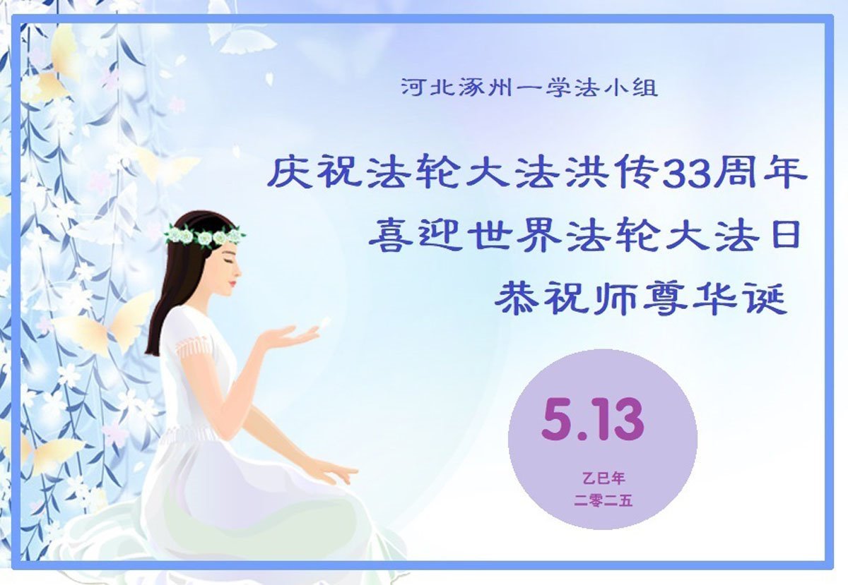 涿州六人一学法小组全体弟子恭祝师父生日快乐!我们学法小组弟子要听师父的话,学好法、整体提高、整体升华,完成使命,兑现誓约,整体跟师父回家。 河北涿州六人一学法小组全体大法弟子敬上 二零二五年五月十二日 河北省保定市涿州市一大法弟子恭祝师尊生日快乐!