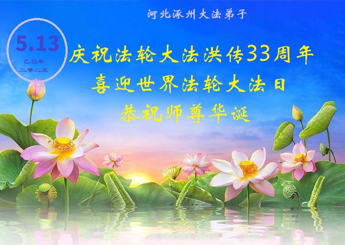 河北省保定市大法弟子恭贺世界法轮大法日!恭祝慈悲伟大的师尊生日快乐!