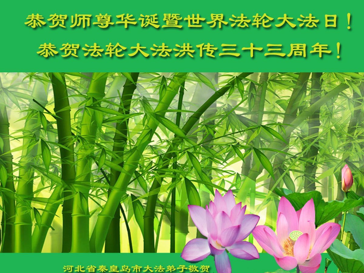 感恩师尊的无量慈悲!感恩师尊给予弟子第二次生命!弟子唯有谨遵师尊教导,弥补不足,做好三件事,跟上正法進程,以报师恩! 河北省秦皇岛市大法弟子恭贺世界法轮大法日暨师尊华诞!