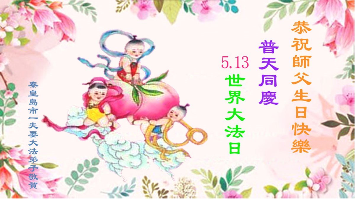 感恩师父的慈悲救度!弟子精進实修,不辱使命。 河北秦皇岛市一夫妻大法弟子恭贺世界法轮大法日暨师尊华诞!