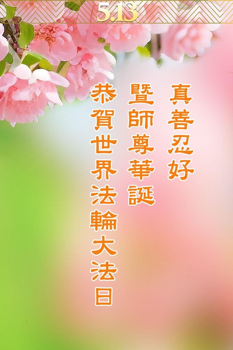 法轮圣王造世间 洪传大法解危难 法正洪微归正道 慈悲救度世中人 普天同庆五一三 感恩恩师慈悲度 真修做好三件事 证实大法力无边 天津市武清区三人学法小组大法弟子及家人恭祝师尊生日快乐!