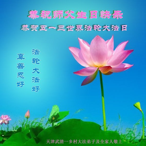 天津市西青区大法弟子恭贺世界法轮大法日!恭祝慈悲伟大的师尊生日快乐!