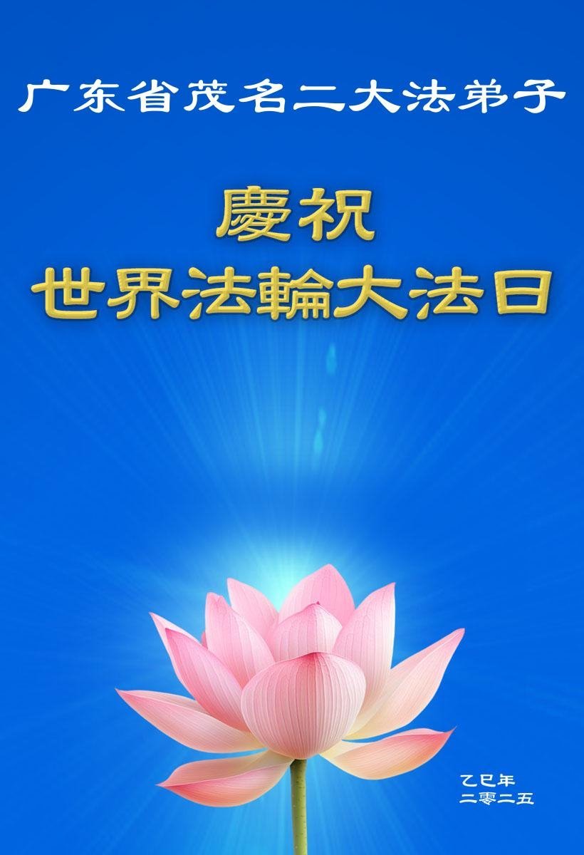 法轮大法好!真善忍好! 普天同庆法轮大法洪传三十三周年! 广东省茂名市大法弟子恭贺世界法轮大法日暨师尊华诞!